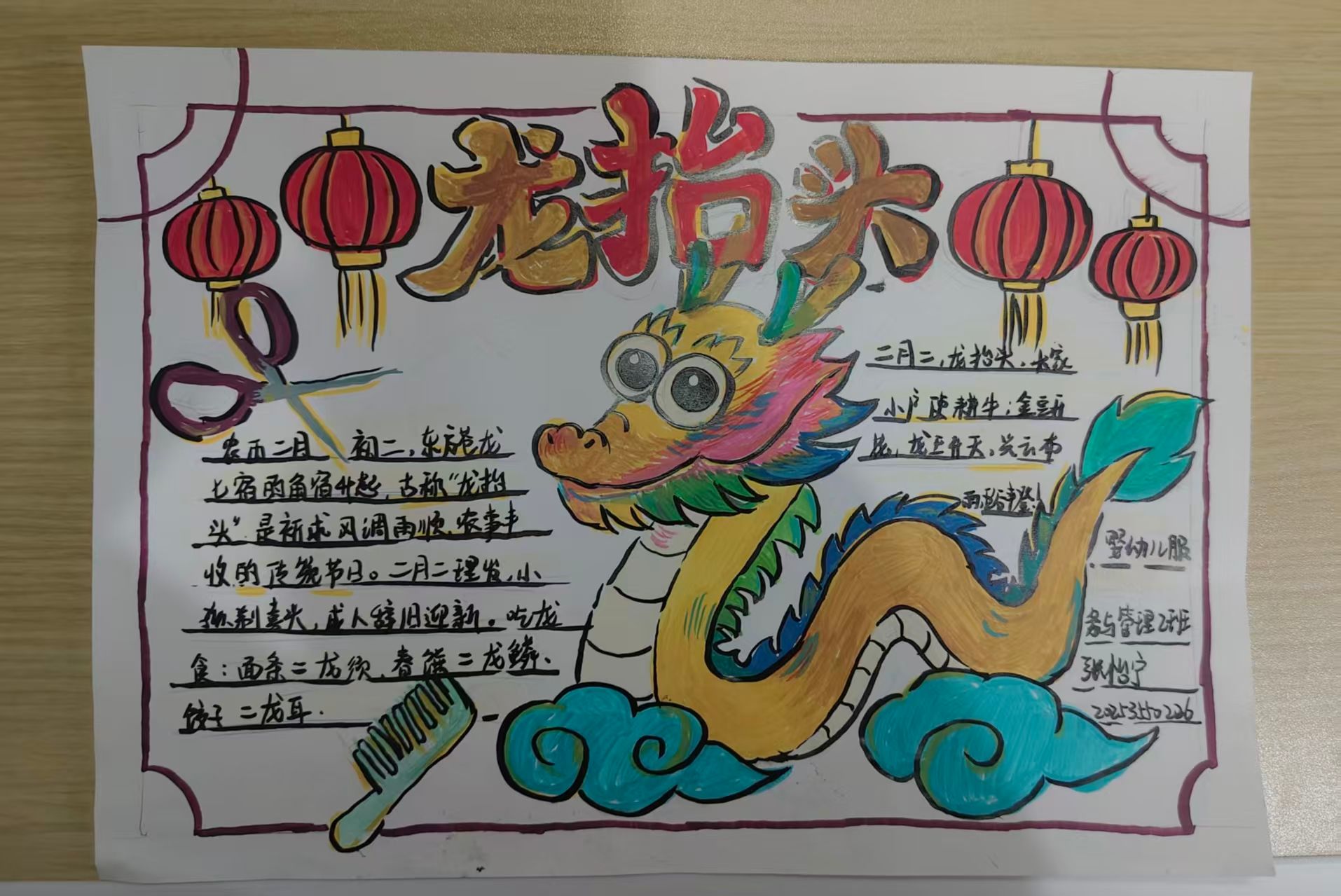 宣讲结束后,学生志愿者组织开展“龙抬头”主题手抄报绘制活动。大家以笔为媒,勾勒龙形纹样、书写节日习俗,在一笔一画中传递对传统节日的热爱。色彩斑斓的手抄报既展现了同学们的创意巧思,也让传统文化在实践中鲜活传递,现场洋溢着喜庆的节日氛围。