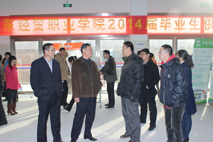 2013年12月10日,由工商管理系、商务工程技术系、国际商务系、科学与人文系、财政金融系共同承办的2014届毕业生供需见面会——商贸类专场招聘活动在山东经贸职业明升体育_明升国际-【app*官网】物流实训基地举行。党委书记鲁庆波,副院长马德胜亲临会场巡视指导。