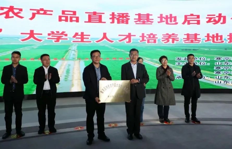 政校企三方分别进行了寒亭区特色农产品大学生直播基地授牌、鸢都红播客大学生人才培养基地授牌、大学生校外实训基地授牌。