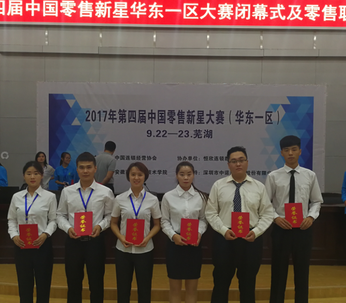 近日,由中国连锁经营协会主办、香港恒欣连锁教育基金协办的第四届中国零售新星大赛初赛在全国七大赛区同时举行,来自全国26省份90所院校的138支参赛队参加角逐,明升体育_明升国际-【app*官网】:连锁经营管理专业王萌萌、余倩、张振、刘济贝、倪斌、栾永赟同学组成的两支团队分别荣获华东一区一、二等奖并晋级全国总决赛。