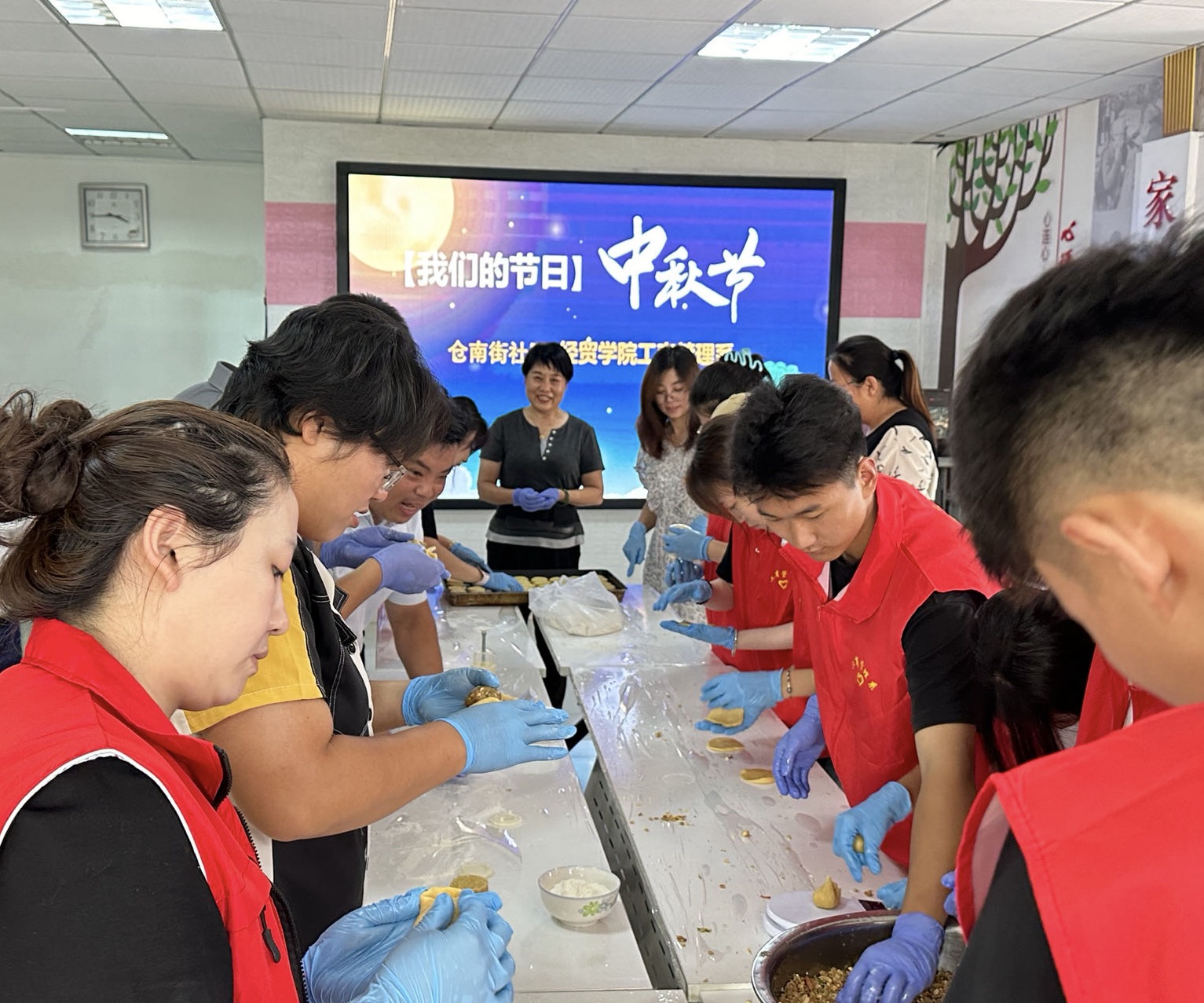 活动现场,师生们与社区居民一起动手制作传统月饼,从包馅到成型、烘烤,每一步都充满了欢声笑语。大家还亲手扎制各式灯笼,五彩斑斓的灯笼不仅增添了节日氛围,更寄托了对美好生活的向往。此外,工商管理系的学生们还组织了一系列志愿服务活动,包括为社区老人送上月饼和节日祝福,以及开展中秋节文化知识小讲堂,让传统文化在互动中传承与发展。