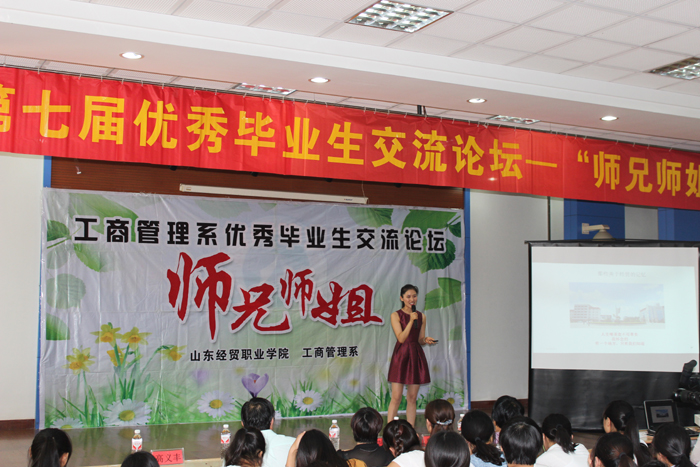 6月30日,工商管理系举行第七届优秀毕业生交流论坛——“师兄师姐”对话节目,明升体育_明升国际-【app*官网】交流合作处处长刘莹,招生就业处副处长刘瑞荣,工商管理系主任李逾男、党总支书记高巍、副主任魏翠芬等出席,工商管理系2014级全体学生及教师代表参加了活动。