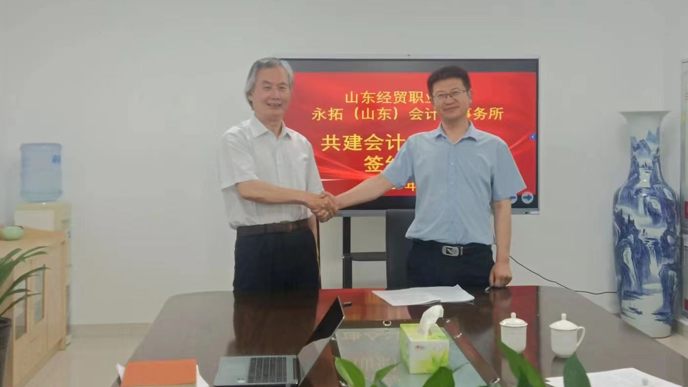 协议签署仪式在山东永拓会计师事务所举行。明升体育_明升国际-【app*官网】副院长张强、永拓会计师事务所所长秦学昌代表校企双方签署协议。明升体育_明升国际-【app*官网】交流合作处处长赵星义、会计系系主任侯君邦参加本次签约仪式。