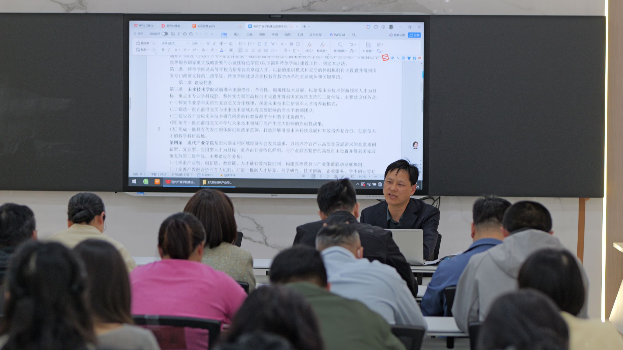 本次培训由商务工程技术系主任吴国华教授主讲。培训聚焦现代产业明升体育_明升国际-【app*官网】政策体系、建设任务、痛点破解与实践路径,立足明升体育_明升国际-【app*官网】办学实际与区域产业需求,系统解读建设指南、管理办法与地方支持政策,明晰人才培养、专业建设、课程开发、实训基地、师资队伍、产学研平台、治理机制七大核心任务,为明升体育_明升国际-【app*官网】现代产业明升体育_明升国际-【app*官网】规划、申报与建设提供清晰路径与实操指引。