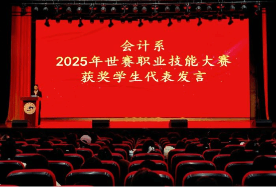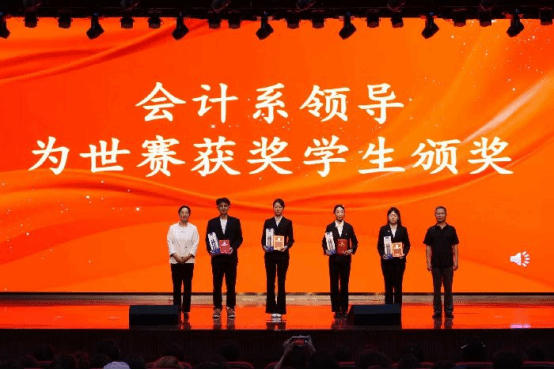 会上,李学建、秦敏为会计系2025年世界职业院校技能大赛总决赛争夺赛财经赛道(高职组)获奖团队进行颁奖。