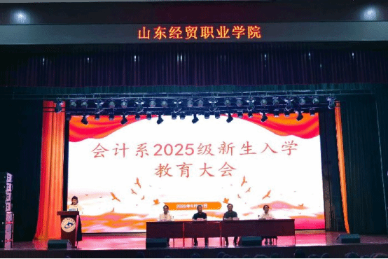 9月25日下午,会计系在明升体育_明升国际-【app*官网】礼堂举行2025级新生入学教育大会。会计系党总支书记李学建、副主任张建峰、秦敏,大数据与会计专业带头人闫菲参加会议。大会由王青青主持。