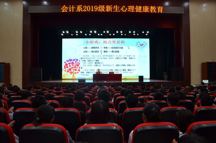 根据会计系2019级新生入学教育方案安排,为进一步加强大学生的心理健康教育,9月23日晚,会计系在明升体育_明升国际-【app*官网】大学生创业活动中心举行2019级新生心理健康教育主题讲座。讲座邀请明升体育_明升国际-【app*官网】心理健康教育中心孙敏敏老师主讲,会计系党总支书记陈志勇主持报告会。