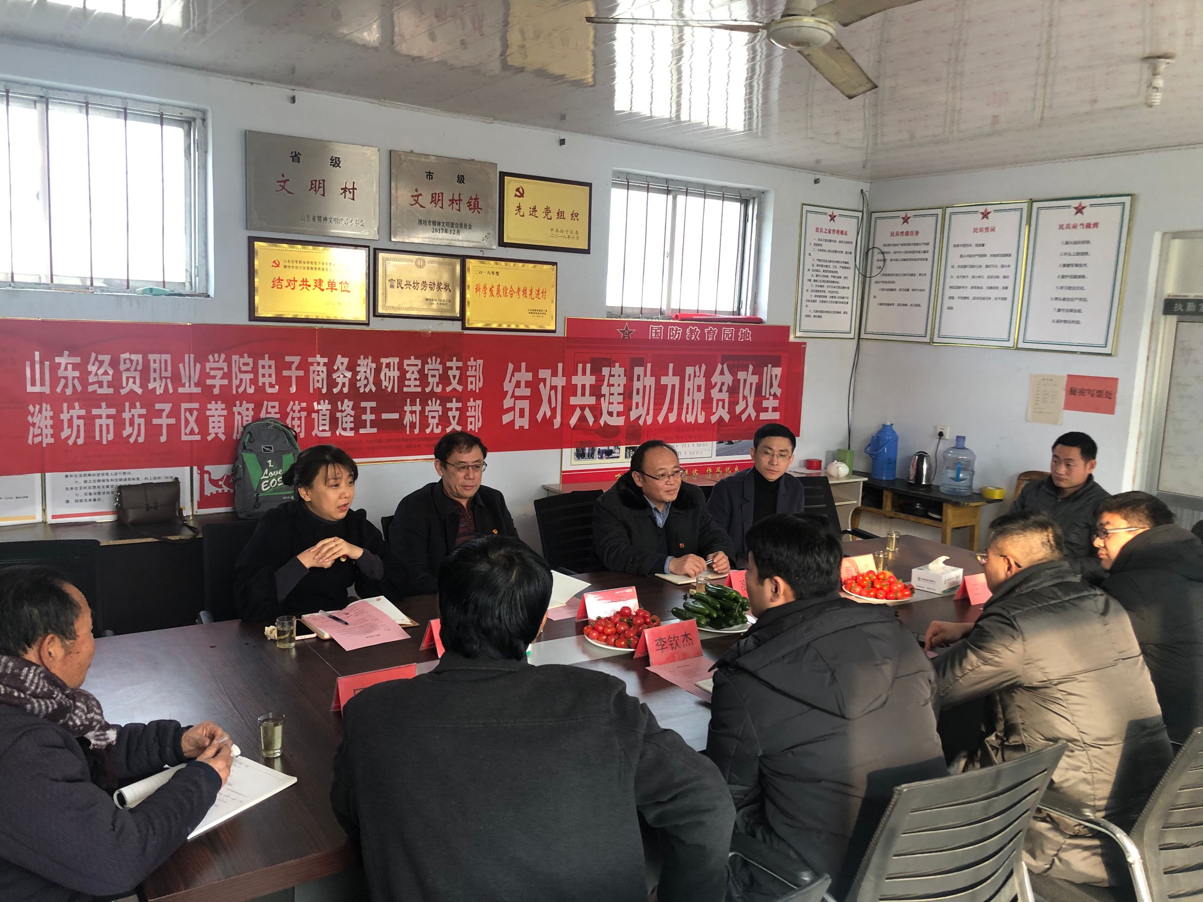 12月23日党支部赴坊子区黄旗堡镇逄王一村党支部开展对共建助力脱贫攻坚活动。通过实地考察及座谈交流,计划2021年为结对共建的黄旗堡逄王一村党支部开展实地、网络培训,培养农村电商新人才,采用“电商+生鲜”农产品模式,为种植户定制电商营销方案,帮助解决销售难题,同时引导学生组建直播团队为当地西红柿销售开辟新的营销途径,争取形成可复制的结对帮扶模式,在黄旗堡镇进行推广。