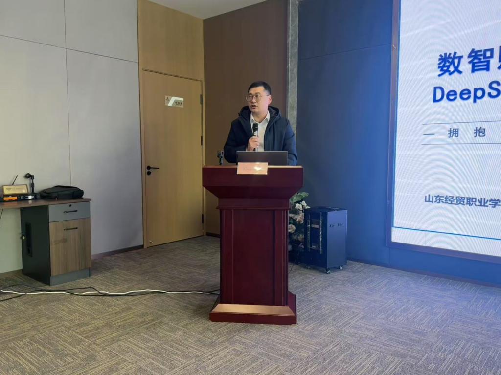 2025年2月20日,山东经贸职业明升体育_明升国际-【app*官网】信息技术系受潍城区西关街道办事处邀请,派出专业教师吴志明前往参加了由西关街办与联合国欣康养项目联合举办的“数智赋能·青春领航”DeepSeek应用能力提升暨青年干部大讲堂活动。此次讲座旨在通过专业培训,将人工智能技术引入基层工作,提升青年干部的数智化能力,为街道高质量发展注入新动能。活动由西关街道党工委副书记姜波主持,吴志明老师代表我系担任主讲嘉宾,带来了DeepSeek应用的专题分享。