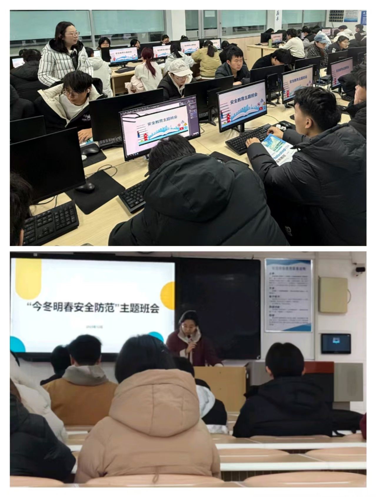 筑牢思想防火墙。12月22日—23日,各级辅导员围绕安全任务开展“今冬明春安全防范”主题班会,辅导员通过情景模拟、案例分析、观看视频、谈心谈话、签订《公寓安全文明公约》等多形式传递安全教育信息,实现安全教育全覆盖,提高学生对安全的认识,让学生掌握应对危险的方法,增强自我保护能力,营造良好的校园安全氛围,筑牢学生安全健康思想防线。