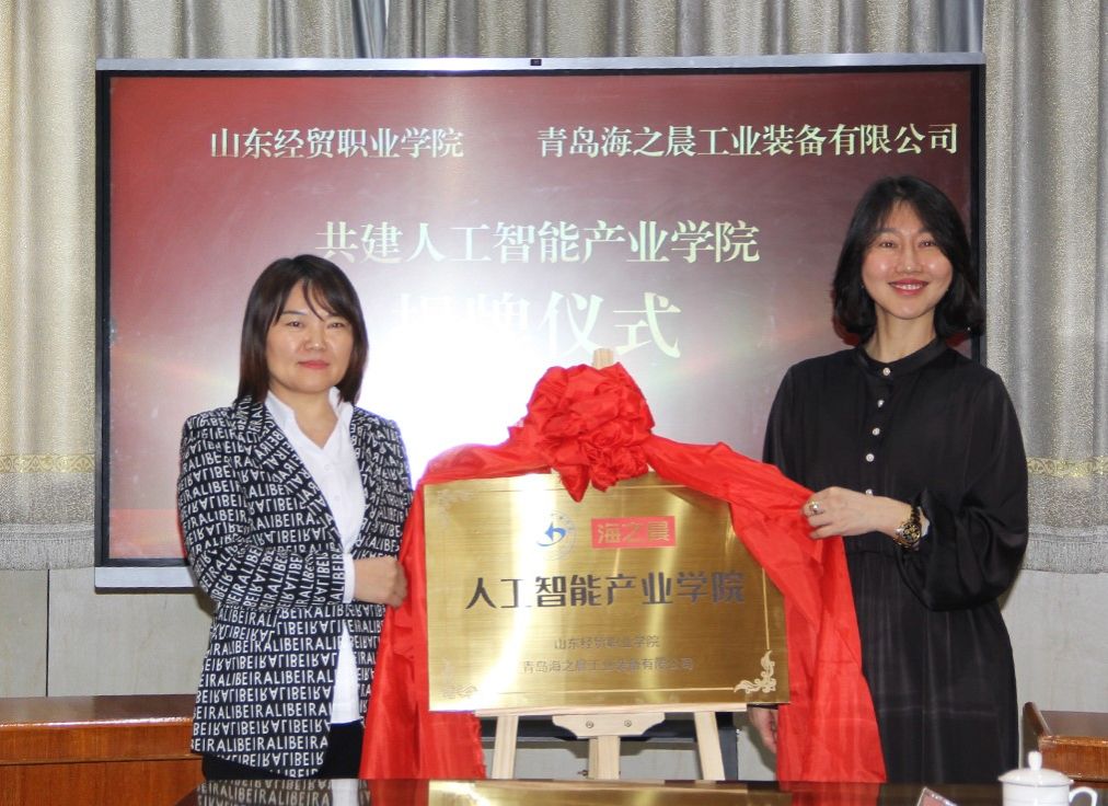 1月28日上午,山东经贸职业明升体育_明升国际-【app*官网】与青岛海之晨工业装备有限公司合作共建“人工智能产业明升体育_明升国际-【app*官网】”签约暨揭牌仪式在明升体育_明升国际-【app*官网】隆重举行。山东经贸职业明升体育_明升国际-【app*官网】副院长张强、信息技术系主任王海霞、交流合作处副处长李君,青岛海之晨工业装备有限公司总经理陈栋、马来西亚分公司总经理刘晓芳、副总经理刘桂欣、销售总监秦向阳等校企双方代表出席仪式。